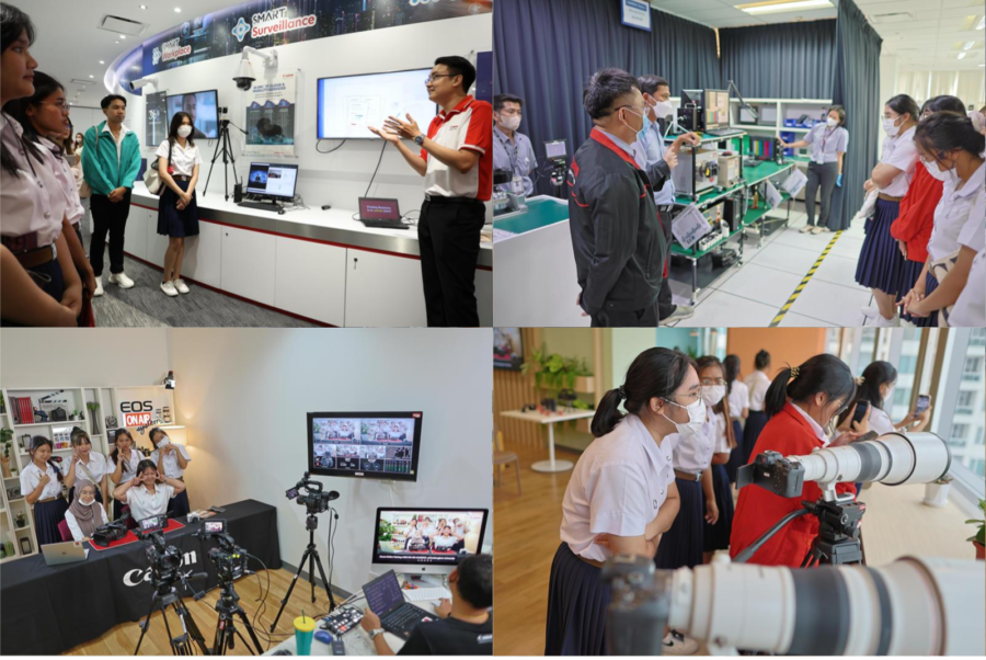 กรุงเทพฯ 6 ตุลาคม 2566 – บริษัท แคนนอน มาร์เก็ตติ้ง (ไทยแลนด์) จำกัด นำโดย นายฮิโรชิ โยโกตะ ประธานบริษัทและประธานกรรมการบริหาร เปิดบ้านต้อนรับคณะนิสิตชั้นปีที่ 1 พร้อมด้วยคณาจารย์จากภาควิชาเทคโนโลยีทางภาพและการพิมพ์ คณะวิทยาศาสตร์ จุฬาลงกรณ์มหาวิทยาลัย เข้าเยี่ยมชมแคนนอนสำนักงานใหญ่ อาคารสาทรสแควร์ เพื่อให้นิสิตเข้าใจถึงภาพรวมของธุรกิจด้านอุตสาหกรรมการถ่ายภาพและการพิมพ์ อุตสาหกรรมการผลิตภาพและสื่อดิจิทัล ตลอดจนอุตสาหกรรมการพิมพ์บรรจุภัณฑ์มากยิ่งขึ้น โดยแคนนอนจัดสาธิตผลิตภัณฑ์และโซลูชันด้านอิมเมจจิ้งให้นิสิตได้เรียนรู้อย่างใกล้ชิด อาทิ การแนะนำผลิตภัณฑ์กล้องดิจิทัลพร้อมสาธิตระบบ Livestreaming, ระบบการพิมพ์ของเครื่องพิมพ์หน้ากว้าง, ระบบการพิมพ์เพื่องานพิมพ์เชิงพาณิชย์, ระบบเทคโนโลยี Smart Tech รวมถึงแนะนำส่วนงานบริการหลังการขาย ซึ่งเป็นประโยชน์แก่นิสิตเป็นอย่างมาก