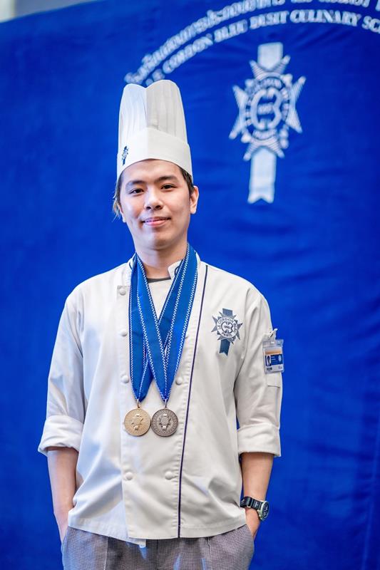 นายฐิติกานต์ เอี่ยมฐิติกุล หนึ่งในผู้สำเร็จหลักสูตรประกาศนียบัตรการประกอบอาหารคาวและขนมอบ กล่าวว่า “ผมตัดสินใจมาเรียนที่เลอ กอร์ดอง เบลอ ดุสิต เพราะอยากมีร้านอาหารสไตล์ฟิวชั่นเป็นของตัวเองที่ทำทั้งอาหารคาวและอาหารหวาน เมื่อได้ค้นคว้ามาแล้วพบว่าที่นี่เป็นสถาบันที่มีชื่อเสียงระดับโลกมาอย่างยาวนาน ก็ยิ่งเป็นการการันตีความสำเร็จของนักเรียนด้วย ยิ่งทำให้ตัดสินใจได้ง่ายขึ้น และเมื่อเข้าเรียนก็รู้สึกประทับใจมากที่ได้เรียนทั้งภาคทฤษฎีและมีการปฏิบัติจริง รวมถึงการแก้ไขปัญหาเฉพาะหน้า การทํางานร่วมกันเป็นทีม ซึ่งมันทําให้ได้รับมิตรภาพดี ๆ มากมาย จึงอยากแนะนําเพื่อน ๆ ทุกคนที่มีความฝันและสนใจด้านการทําอาหารให้มาเรียนที่เลอ กอร์ดอง เบลอ ดุสิต รับรองว่าจะเป็นการตัดสินใจที่ไม่ผิดหวังแน่นอน”
