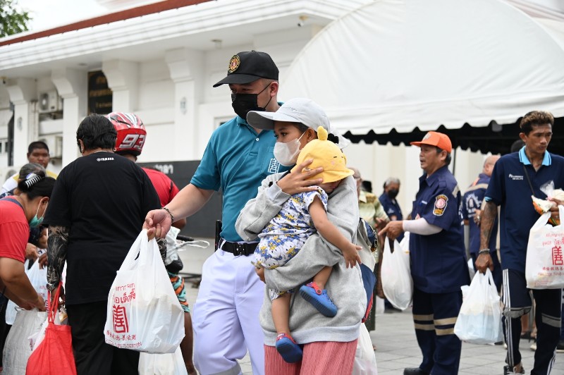 มูลนิธิป่อเต็กตึ๊ง ร่วมกับ วัดเทพศิรินทราวาสราชวรวิหาร จัดพิธีทิ้งกระจาด แจกเครื่องอุปโภคบริโภคและชุดยาสามัญประจำบ้านรวม 500 ชุด