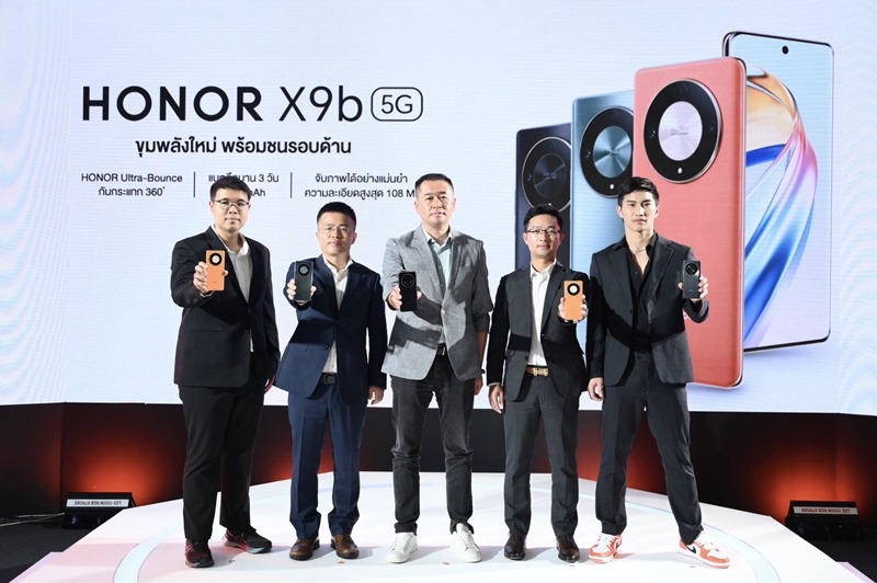 เดินหน้ารุกตลาดสมาร์ตโฟนไทย ประกาศเปิดตัว HONOR X9b อย่างเป็นทางการในประเทศ ภายใต้สโลแกน“ขุมพลังใหม่ พร้อมชนรอบด้าน – All Angle Ultra Tough” ชูจุดเด่นโดนใจผู้ใช้งานด้วยหน้าจอแสดงผลขนาดใหญ่มีความทนทานเป็นพิเศษ สามารถรองรับการกระแทกรอบด้าน 360 องศา มาพร้อมประสิทธิภาพการใช้งานที่ยาวนานสูงสุดถึง 3 วัน ด้วยแบตเตอรี่ขนาด 5800mAh ตลอดจนมอบประสบการณ์การถ่ายภาพที่เหนือกว่าด้วยระบบกล้องสามตัว ทำให้ได้ภาพสวย คมชัด รวมถึงถ่ายภาพในมุมกว้างได้อย่างน่าประทับใจ เปิดตัวในราคาพิเศษ 10,990 บาท* และพิเศษสุดกับการคว้านักมวยดาวรุ่ง ตะวันฉาย เป็นพรีเซนเตอร์ครั้งแรก เพื่อร่วมถ่ายทอดและสะท้อนให้เห็นถึงความเป็นสมาร์ตโฟนที่มีความแข็งแกร่ง ทนทาน ที่พร้อมตอบโจทย์ทุกการใช้งานได้อย่างลงตัว