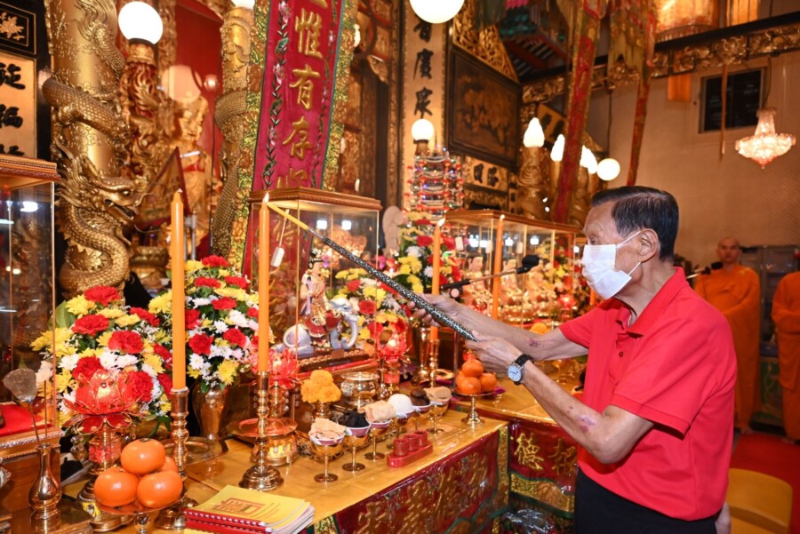 เจ้าแห่งสวรรค์อันเป็นที่เคารพกันทั่วบ้านทั่วเมือง สำหรับชาวจีนแล้ว ท่านเป็นเทพเจ้าที่ต้องให้ความเคารพอย่างสูงเหมือนกันหมด และเพื่อเป็นสัญญาณว่าได้สิ้นสุดงานเทศกาลตรุษจีนแล้ว โดยทำพิธีเวียนธูปรอบศาลเจ้า 3 รอบ ตั้งจิตอธิษฐาน ระลึกพระคุณเทพยดาฟ้าดิน ขออำนาจฟ้าดินเป็นที่พึ่ง ขอให้สิ่งศักดิ์สิทธิ์ที่ตนนับถือ เช่น หลวงปู่ไต้ฮง ช่วยดลบันดาลให้ประสบโชคดีตลอดปีใหม่ พร้อมกับสรรเสริญและขอพรจากเทพเจ้า เพื่อทำให้จิตใจเบิกบาน ผ่องแผ้ว และเริ่มต้นวันปีใหม่ของคนไทยเชื้อสายจีนอย่างมีความสุข และเป็นสิริมงคลแก่ตนเองและครอบครัว