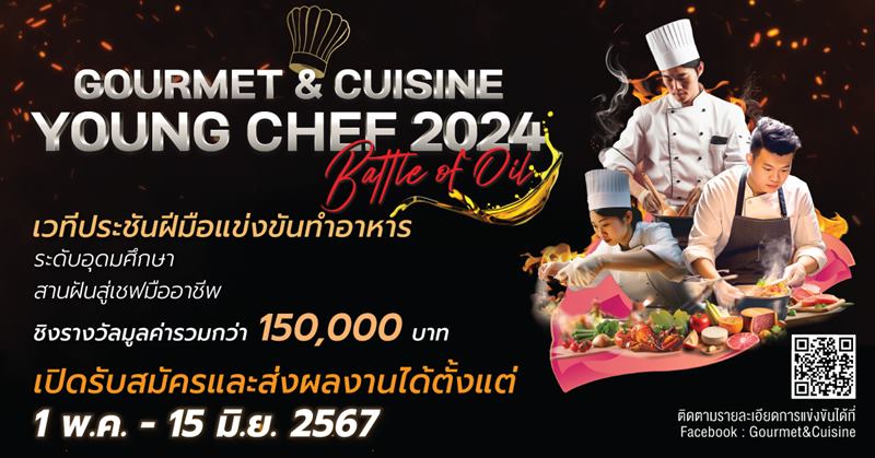 ใกล้เข้ามาแล้วกับเวทีการแข่งขันทำอาหารระดับอุดมศึกษา “Gourmet & Cuisine Young Chef 2024”สานฝันสู่เชฟมืออาชีพ จัดโดย นิตยสาร Gourmet & Cuisine ร่วมกับ โรงเรียนสอนประกอบอาหาร เลอโนท ประเทศไทย (Lenôtre Culinary Arts School Thailand) ขอเชิญนิสิต นักศึกษา ผู้ที่มีใจรักในการทำอาหารร่วมสมัครเข้าแข่งขัน เพื่อเฟ้นหาผู้มีทักษะการประกอบอาหารยอดเยี่ยม ชิงรางวัลมูลค่ารวมกว่า 150,000 บาท พร้อมถ้วยรางวัลเกียรติยศ ประกาศนียบัตร และอื่นๆ อีกมากมาย เริ่มเปิดรับสมัครตั้งแต่วันที่ 1 พฤษภาคม-15 มิถุนายน 2567 ติดตามรายละเอียดได้ที่ Facebook : Gourmet & Cuisine Young Chef และ Gourmet & Cuisine
