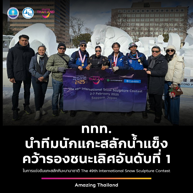 วันที่ 7 กุมภาพันธ์ 2568 นางสาวฐาปนีย์ เกียรติไพบูลย์ ผู้ว่าการการท่องเที่ยวแห่งประเทศไทย ได้ร่วมเป็นเกียรติในงานประกาศรางวัลของการแข่งขันแกะสลักหิมะ The 49th International Snow Sculpture Contest ภายในงาน The 75th Sapporo Snow Festival 2025 ณ เมืองซัปโปโร ประเทศญี่ปุ่น