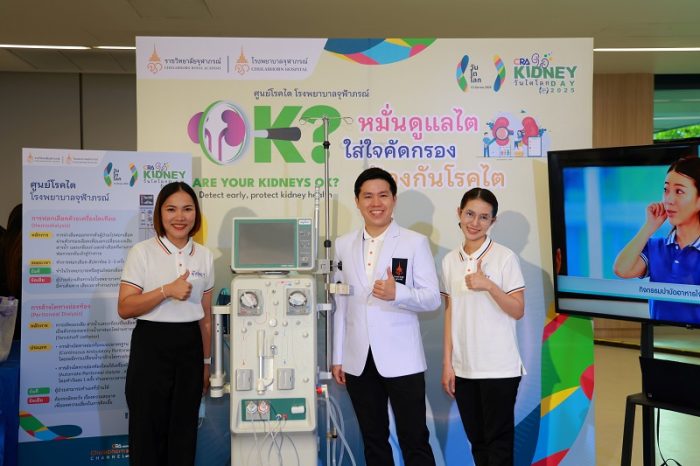 ดังนั้น เพื่อสืบสานพระปณิธานของ ศาสตราจารย์ ดร. สมเด็จพระเจ้าน้องนางเธอ เจ้าฟ้าจุฬาภรณวลัยลักษณ์ อัครราชกุมารี กรมพระศรีสวางควัฒน วรขัตติยราชนารี องค์ประธานผู้ทรงก่อตั้งโรงพยาบาลจุฬาภรณ์ ราชวิทยาลัยจุฬาภรณ์ ให้เป็นที่พึ่งแก่ประชาชนชาวไทย เพื่อให้ผู้ป่วยสามารถได้รับการรักษาด้วยเทคโนโลยีที่ทันสมัยอย่างเท่าเทียม โรงพยาบาลจุฬาภรณ์ ราชวิทยาลัยจุฬาภรณ์ จึงได้จัดกิจกรรมวันไตโลก ประจำปี 2568 “Are Your Kidneys OK? Detect Early, Protect Kidney Health” หมั่นดูแลไต ใส่ใจคัดกรอง ป้องกันโรคไต โดยมี รศ. นพ.สุรศักดิ์ ลีลาอุดมลิปิ รักษาการผู้อำนวยการโรงพยาบาลจุฬาภรณ์ เป็นประธานเปิดงาน ร่วมด้วยทีมแพทย์เฉพาะทางอายุรกรรมโรคไต รพ.จุฬาภรณ์ นำโดย นพ.ศุภณัฐ วรวิชชวงษ์ นพ.ปรัชญา พุมอุทัยวิรัตน์ และ นพ.ปิยพันธ์ ประพันธ์วัฒนะ ร่วมให้ความรู้เกี่ยวกับโรคไตบนเวทีเสวนาและการดูแลผู้ป่วยโรคไตและยังรวมถึงดูแลผู้บริจาคไต เรียกได้ว่า โรงพยาบาลจุฬาภรณ์ดูแลทั้งผู้ให้และผู้รับในการติดตามอาการป่วยเป็นอย่างดี สำหรับกิจกรรมครั้งนี้จัดขึ้น ณ บริเวณ ชั้น 1 อาคารกรมพระศรีสวางควัฒน โรงพยาบาลจุฬาภรณ์ ราชวิทยาลัยจุฬาภรณ์ วันพฤหัสบดีที่ 13 มีนาคม 2568