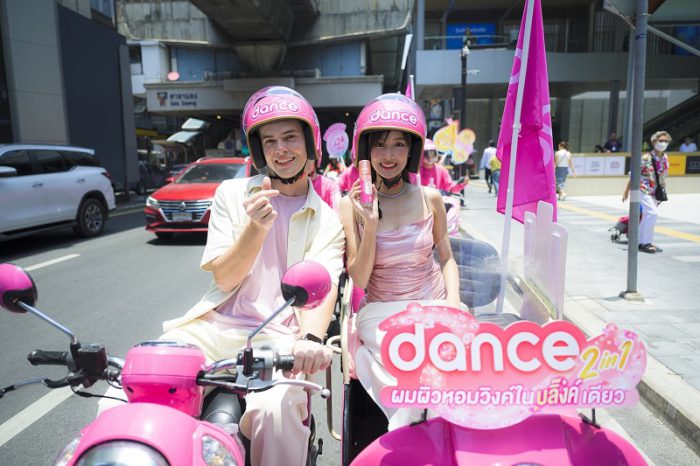Dance (แดนซ์) มาพร้อมกิจกรรมคาราวาน Dance Thailand พิเศษ บุกเมือง เล่นใหญ่ ใจกลางกรุงเทพมหานคร นำทัพโดย “เก๋ไก๋ ณัฐธิชา” และ “อาร์บี” หนุ่มคนสนิท ที่จะมาตะลุยแจกความผมและผิวหอมวิงค์ในบลิ๊งค์เดียว ผ่านจุดสำคัญ ๆ ได้แก่ Park Silom, BTS ช่องนนทรี, อาคาร Silom Complex, และอาคาร C.P Tower โดยทุกพื้นที่ จะได้พบกับกิจกรรม “Dance x KAYKAI” ที่จะมา “เต้นสะบัด… ผมไม่สะดุด หอมทุกจังหวะ!” พร้อมด้วย เอฟโฟร์, เอิร์ธ, กอกก และบอล ที่มาร่วมสร้างสีสัน มอบความสดใส และแจกตัวอย่างผลิตภัณฑ์ให้ทุกคนได้ลองใช้กัน เพียงแค่ผู้ร่วมกิจกรรมวิงค์ตาให้กับคาราวาน Dance Thailand ก็รับตัวอย่างผลิตภัณฑ์ Dance (แดนซ์) Glossy Body & Hair Perfume Mist ผลิตภัณฑ์น้ำหอม 2-in-1 ขนาด 25 มิลลิลิตร ฟรี!