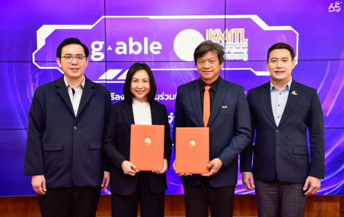 เมื่อเร็วๆ นี้ สถาบันเทคโนโลยีพระจอมเกล้าเจ้าคุณทหารลาดกระบัง (สจล.) โดย ผศ.ธิติพันธุ์ ตริตระการ รองอธิการบดีฝ่ายกิจการนักศึกษาและศิษย์เก่าสัมพันธ์ และคุณฐิติกานต์ กฤษณวิภาคพร รองประธานบริหารอาวุโส ฝ่ายทรัพยากรบุคคล บริษัท จีเอเบิล จำกัด (มหาชน) ร่วมลงนามบันทึกข้อตกลงความร่วมมือทางวิชาการ ซึ่งเป็นการต่อยอดความร่วมมือกันอีกครั้ง จากจุดเริ่มต้นดังกล่าวสู่การพัฒนาระบบนิเวศของการเรียนรู้ การวิจัย และการสร้างนวัตกรรมร่วมกัน โดยจะครอบคลุมประเด็นสำคัญ อาทิ การร่วมกัน พัฒนางานวิจัยเพื่อใช้ในการเรียนการสอน การสนับสนุนงบประมาณ เพื่อขับเคลื่อนงานวิจัยและนวัตกรรม การร่วมกันพัฒนาหลักสูตร ด้านเทคโนโลยีสารสนเทศและนวัตกรรม