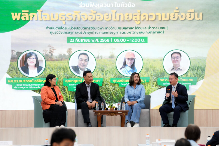 กรุงเทพฯ, 23 ก.ย. 68 : คณะเศรษฐศาสตร์ มหาวิทยาลัยเกษตรศาสตร์ จับมือ สำนักงานคณะกรรมการอ้อยและน้ำตาลทราย (สอน.) ร่วมด้วย สมาคมนักวิชาการอ้อยและน้ำตาลแห่งประเทศไทย เปิดตัวโครงการ “สร้างผู้ประกอบการและนักธุรกิจไร่อ้อยเพื่อให้มีรายได้ เพิ่มจากพันธุ์อ้อย และรับจ้างผลิตอ้อยแบบครบวงจร” มุ่งเป้าสร้างผู้ประกอบการไร่อ้อย และสร้างเกษตรกรชาวไร่อ้อยให้เป็นนักธุรกิจไร่อ้อย มุ่งเน้นความสำเร็จในการทำธุรกิจ ผลกำไรสูงสุด และมีความยั่งยืน