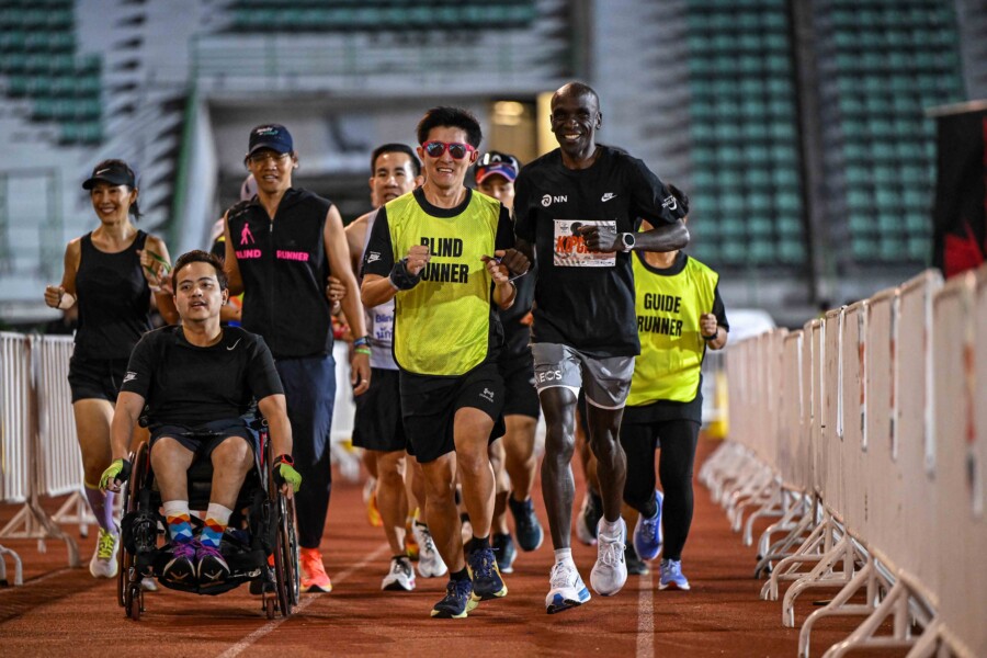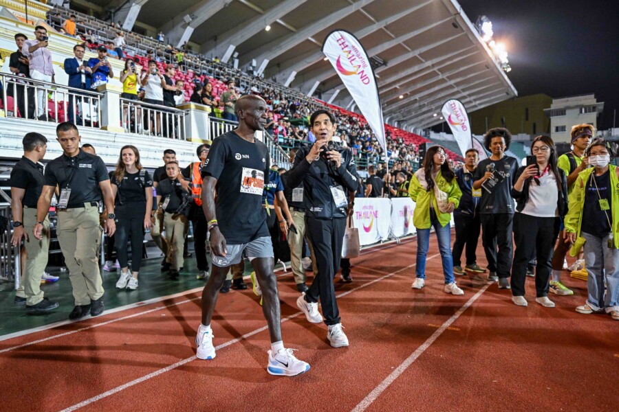 กรุงเทพฯ ๒๗ พฤศจิกายน ๒๕๖๘: เอเลียด คิปโชเก้ ตำนานนักวิ่งมาราธอนชาวเคนยา เจ้าของแชมป์เมเจอร์ ๑๑ สมัย หลังจากเดินทางมาถึงประเทศไทยเป็นที่เรียบร้อยแล้ว ได้เข้าร่วมกิจกรรมอุ่นเครื่องก่อนการแข่งขันรายการ “อะเมซิ่งไทยแลนด์มาราธอนแบงค็อก 2025 พรีเซ็นต์บาย โตโยต้า” ครั้งที่ ๘ ประจำปี ๒๕๖๘ กับแฟนนักวิ่งชาวไทยและต่างชาติ ในรายการ Running Zone 10K (RZ10) และ Fan Meet with Eliud Kipchoge ที่สนามกีฬาแห่งชาติศุภชลาศัย จัดโดยกรุงเทพมหานคร โดยได้รับเกียรติจากนายศานนท์ หวังสร้างบุญ รองผู้ว่าราชการกรุงเทพมหานคร, นายทวีเดช ทองอ่อน ผู้อำนวยการฝ่ายกิจกรรม การท่องเที่ยวแห่งประเทศไทย, ดร.อัชรัฐ ยงทวี ผู้อำนวยการสำนักวิทยาศาสตร์การกีฬา กรมพลศึกษา และ มร.เอเลสซิโอ ปุนซี่ ผู้อำนายการอาวุโสสมาคมกรีฑาโลก ให้เกียรติปล่อยตัวนักวิ่ง