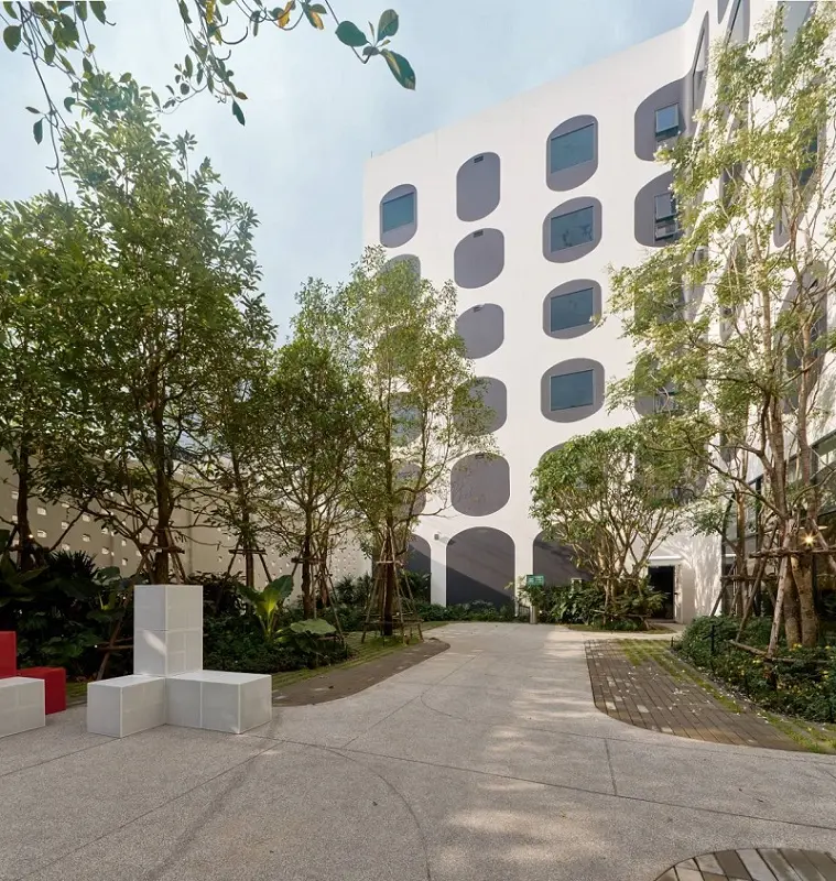 ตกแต่งด้วย Façade “หน้าต่างเครื่องบิน” ดีไซน์ซิกเนเจอร์ที่บ่งบอกความเป็น Airport Hotel ได้อย่างโดดเด่น พร้อมพื้นที่สีเขียวบริเวณโดยรอบสำหรับผ่อนคลายและเติมพลังระหว่างวันได้อย่างเต็มที่