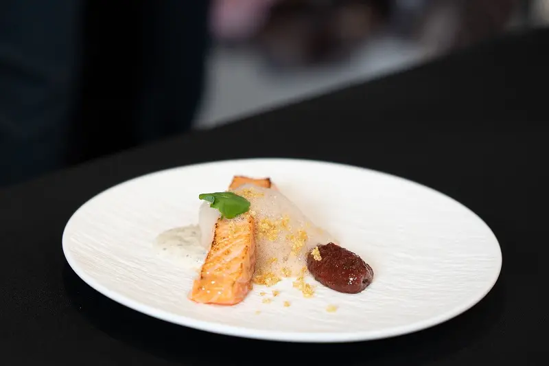 ไฮไลต์สำคัญของการออกแบบเมนูในครั้งนี้คือ การได้รับเกียรติจาก เชฟวิลเมนท์ ลีออง ผู้อำนวยการภาคพื้นทวีปเอเชีย และกรรมการบริหารสมาคมเชฟโลก มาร่วมรังสรรค์เมนูพิเศษทางเลือกสุขภาพ คือ ปลาเทราต์กงฟี เสิร์ฟพร้อมโฟมผัก 5 สีและแยม ซอสทรัฟเฟิลควินัว : ปลาเทราต์อุดมด้วยโอเมก้า-3 และโปรตีนคุณภาพสูง ปรุงด้วยเทคนิคกงฟีอุณหภูมิต่ำ ช่วยคงคุณค่าสารอาหารและทำให้เนื้อปลานุ่ม ย่อยง่าย เสริมด้วยโฟมผัก 5 สีที่ให้สารต้านอนุมูลอิสระ