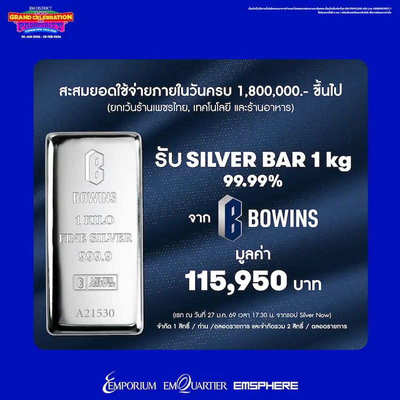 นางสุธาวดี ศิริธนชัย กรรมการผู้จัดการสายงานการตลาด เอ็ม ดิสทริค กล่าวว่า เทศกาลตรุษจีนถือเป็นหนึ่งในช่วงเวลาสำคัญของปีที่ผู้บริโภคมีการใช้จ่ายสูง และเป็นแรงขับเคลื่อนสำคัญของระบบเศรษฐกิจ เอ็ม ดิสทริค จึงวางกลยุทธ์การตลาดเชิงรุก โดยผสานความร่วมมือกับพันธมิตรทางธุรกิจ เพื่อออกแบบแคมเปญที่ตอบโจทย์พฤติกรรมผู้บริโภคในทุกระดับ ตั้งแต่กลุ่มลูกค้าทั่วไป กลุ่มนักช้อป ไปจนถึงกลุ่มลูกค้ากำลังซื้อสูง (High-spending Segment) ในปีนี้เองทางเอ็ม ดิสทริคจึงร่วมกับพันธมิตรธุรกิจตอบรับความต้องการของลูกค้าเพื่อมอบความมั่งคั่งและโชคลาภ ผ่านอภิมหาโปรโมชันต้อนรับปีมะเมียกับ “EM DISTRICT: THE GRAND CELEBRATION OF PROSPERITY CHINESE NEW YEAR 2026” ระหว่างวันที่ 30 ม.ค. 69 – 28 ก.พ. 69 เพียงช้อปภายในศูนย์การค้า ผ่านบัตรเครดิต Bangkok Bank M Visa รับคูปองแทนเงินสดรวมมูลค่าสูงสุด 35,400 บาท เมื่อมียอดใช้จ่ายตามเงื่อนไข หรือรับคูปองแทนเงินสดรวมมูลค่าสูงสุด 5,600 บาท ที่ PROSPERITY GOLDEN TREE ต้นไม้ทองแห่งความมั่งคั่ง เมื่อช้อปครบ 8,888 บาทขึ้นไป พร้อมไฮไลต์สุดพิเศษ สำหรับลูกค้าที่มียอดใช้จ่ายสะสมครบ 2,800 บาท/วัน รับแก้วเก็บอุณหภูมิ LocknLock x EM DISTRICT PROSPERITY TUMBLER COLLECTION 550 ml มูลค่า 1,490 บาท และลูกค้าที่มียอดใช้จ่ายสะสมครบ 1.8 ล้านบาท/วัน รับเงินแท่ง ความบริสุทธิ์ 99.99% น้ำหนัก 1 กิโลกรัม จาก BOWINS SILVER มูลค่า 115,950 บาท (เรท ณ วันที่ 27 ม.ค. 69 เวลา 17.30 น. จาก แอปพลิเคชัน SILVER NOW) นอกจากนี้สมาชิก M CARD สามารถแลกคะแนน 800 M POINT รับคูปองแทนเงินสดรับประทานอาหารสูงสุด 800 บาท (ตามเงื่อนไข) และเมื่อรับประทานอาหารจากร้านที่ร่วมรายการในกลุ่ม EM DINING รับน้ำแร่ด่างธรรมชาติ Iceland Spring pH 8.88 มูลค่า 120 บาท (จำนวน 2 ขวด) เมื่อทานอาหารครบ 500 บาทขึ้นไป หรือใช้จ่ายผ่านบัตรเครดิต Bangkok Bank M Visa รับคูปองแทนเงินสดรวมมูลค่าสูงสุด 1,100 บาท เมื่อทานครบตามเงื่อนไข พร้อมรับเมนูพิเศษ เมื่อใช้จ่ายผ่านบัตรเครดิต Bangkok Bank M Visa หรือ Bangkok Bank ที่ร้านอาหารชั้นนำที่ร่วมรายการ พร้อมมอบรางวัลสุดเอ็กซ์คลูซีฟสำหรับลูกค้าที่มียอดช้อปสะสมสูงสุดตลอดรายการ ขั้นต่ำ 40 ล้านบาทขึ้นไป รับรถยนต์ LEXUS NX มูลค่า 3.31 ล้านบาท พิเศษลูกค้าที่เข้าร่วมชมโชว์ EM DISTRICT: THE GRAND CELEBRATION OF PROSPERITY CHINESE NEW YEAR 2026 ที่ลาน QUARTIER PARC เอ็มควอเทียร์ ในวันที่ 12 ก.พ. 69 และ 17 ก.พ. 69 รับ เครื่องดื่มรังนกแท้ Ninest มูลค่า 89 บาท