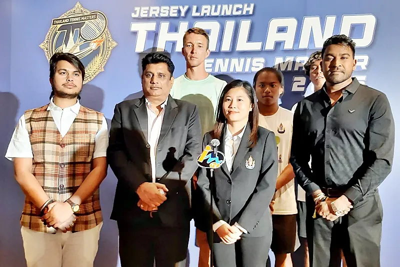 นางสาวนันท์นภัส นันตะสุข ผู้แทนกรรมการอำนวยการสมาคมกีฬาลอนเทนนิสฯ และ นายซาชิน โทมาร์ ผู้อำนวยการจัดการแข่งขัน บริษัท เรด ทาเลนต์ กรุ๊ป จำกัด ร่วมแถลงข่าวเปิดตัวการแข่งขันเทนนิสนานาชาติรายการใหญ่ “Jersey Launch: Thailand Tennis Masters 2026” (เจอร์ซีย์ ลันช์: ไทยแลนด์ เทนนิส มาสเตอรส์ 2026) อย่างเป็นทางการ ที่ โรงแรม เอ็นเอช กรุงเทพ สุขุมวิท ร่วมด้วย 2 นักเทนนิสหนุ่มดาวรุ่งของไทย นำโดย “เจได” เครดิต ไชยรินทร์ และ “วินเนอร์” ธีรภัทร ขันติวีรวัฒน์