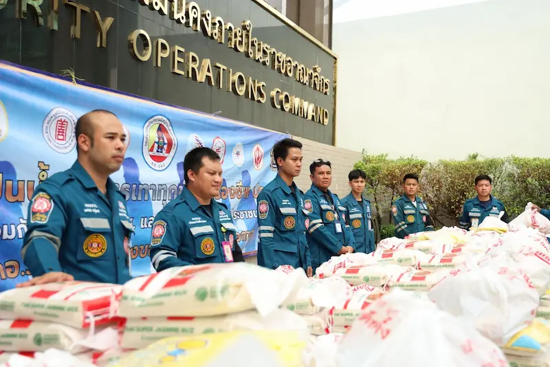 วันนี้ (วันพฤหัสบดีที่ 30 เมษายน พ.ศ. 2569) พลเอก ชัยพฤกษ์ ด้วงประพัฒน์ เลขาธิการ กองอำนวยการรักษาความมั่นคงภายในราชอาณาจักร เป็นประธานในพิธี พร้อมด้วย พลโท ธนาธิป สว่างแสง ผู้อำนวยการสำนักกิจการมวลชนและสารนิเทศ กองอำนวยการรักษาความมั่นคงภายในราชอาณาจักร (ผอ.สมท.กอ.รมน.) นายอรัณย์ โตทวด ผู้จัดการใหญ่มูลนิธิป่อเต็กตึ๊ง คณะมูลนิธิไทยอาสาป้องกันชาติ และคณะภาคีเครือข่ายภาคเอกชน ร่วมในพิธีเปิดโครงการ “กอ.รมน. ปันน้ำใจ บรรเทาทุกข์ค่าครองชีพของประชาชน” มอบสิ่งของอุปโภคบริโภค เพื่อเป็นการช่วยเหลือประชาชนโดยเฉพาะอย่างยิ่งผู้มีรายได้น้อย และประชาชนกลุ่มเปราะบางที่ได้รับผลกระทบจากภาวะเศรษฐกิจ โดยมูลนิธิป่อเต็กตึ๊งได้จัดทีมเจ้าหน้าที่สาธารณภัย และเจ้าหน้าที่บรรเทาสาธารณภัย นำถุงยังชีพจำนวน 1,000 ชุด รวมมูลค่ากว่า 2 แสนบาท ร่วมสนับสนุนในโครงการดังกล่าว ณ บริเวณด้านหน้ากองอำนวยการรักษาความมั่นคงภายในราชอาณาจักร สวนรื่นฤดี เขตดุสิต กรุงเทพฯ